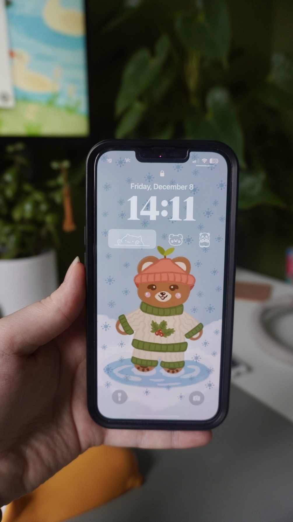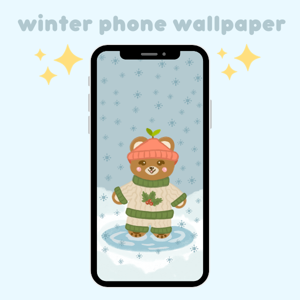 Get your phone ready for the holiday season with our cute phone wallpaper! ❄️✨🐻🧣